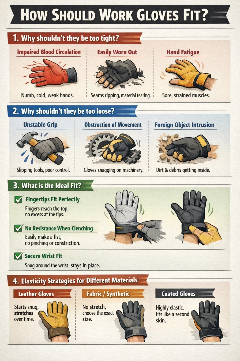 Hvis handskerne er for stramme, vil dine hænder blive følelsesløse, kolde og endda føles svage efter at have brugt dem i lang tid, hvilket gør arbejdet usikkert.
