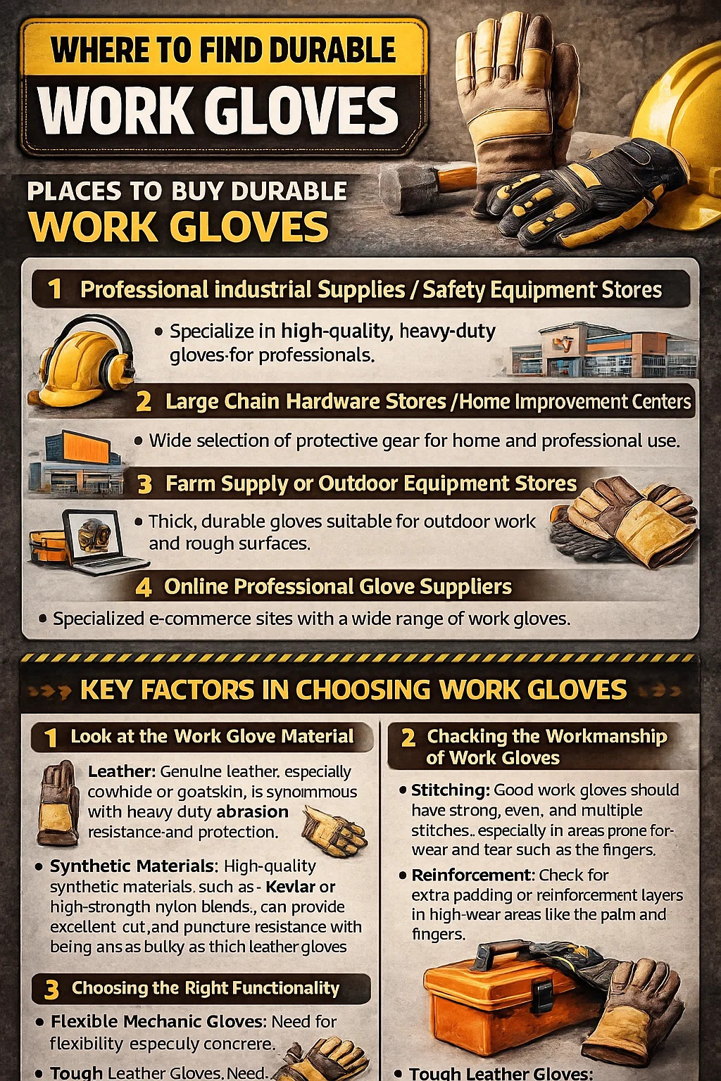 Disse butikker er ikke så almindelige som almindelige detailbutikker, men de er specialiserede i at levere fagfolk inden for byggeri, fremstilling og andre industrier, der kræver kraftige handsker.