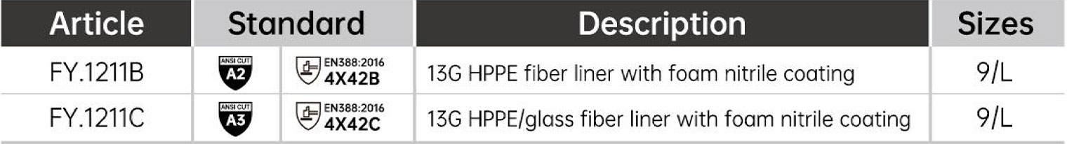 13G skærebestandige skaller giver forskellig skærebestandig ydeevne på startniveau.